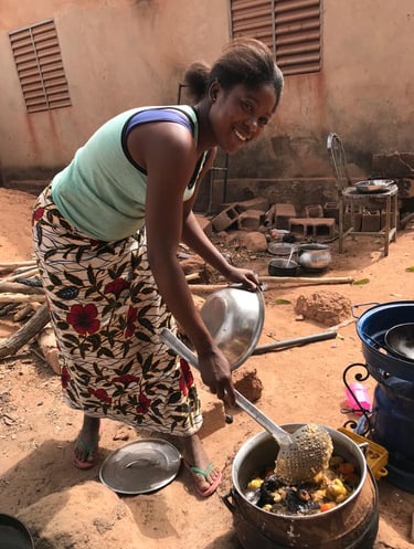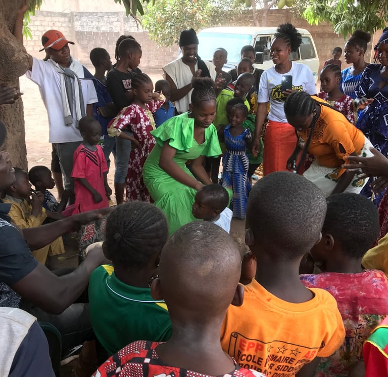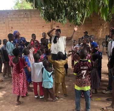 2023, Animation musicale et dansante à Bobo Dioulasso organisé par l'association autour d'un riz gras. Merci à Binta et Sita.